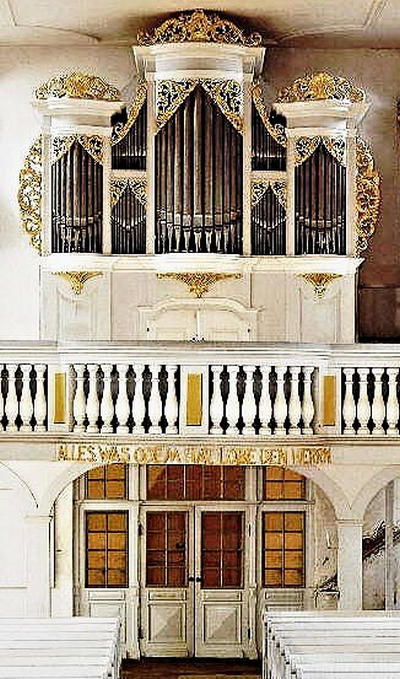 organ by J.C. Schmieder, 1732, from Stönzsch and originally 12 stops - examined by Bach - moved to Hohnstein and enlarged in 1967