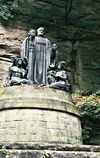 Wagner monument (R. Guhr 1933) , the composer represented as a Grail knight - plaque on neaby Lochmühle