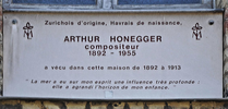 This house of the composer Arthur Honegger (1892-1955), in the upper town, has survived the catastrophe of 1944. He lived here from 1892 - shortly after his birth - until 1913. His father was a Swiss coffee merchant. The Swiss descent is mentioned on the plaque over the entry: Zürichois d’origine, Havrois de naissance.