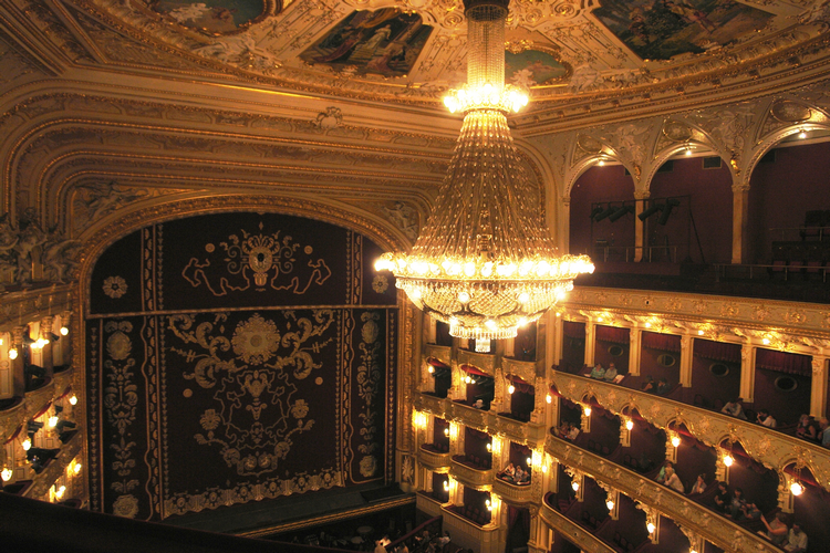 The first opera house of Odessa from 1810 burnt down in 1873. Europe’s most renowned opera architects, the Viennese Fellner & Helmer, designed the new building, which was opened in 1887. In 1891 there were concerts by Tchaikovsky and a performance of his Queen of Spades. The hall has 1636 seats, the acoustics are excellent.